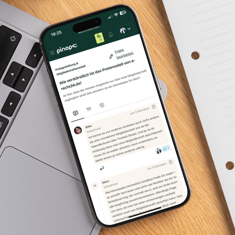 Nutze deine pinops Credits gezielt, um belastbare Customer Insights aufzubauen. Mit pinops PLUS erhältst du zusätzlich Zugang zu erweiterten KI-Tools und persönlicher Beratung – damit du dein Unternehmen konsequent kundenorientiert ausrichten kannst.